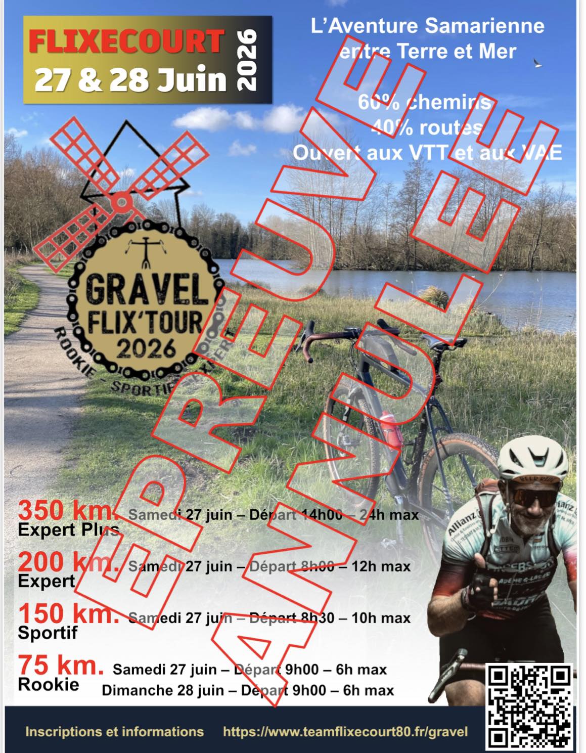 Le Team Flixecourt 80 vous propose le samedi 27 et 28 juin 2026 une épreuve Gravel à la découverte des chemins et routes Samariennes entre terre et mer.